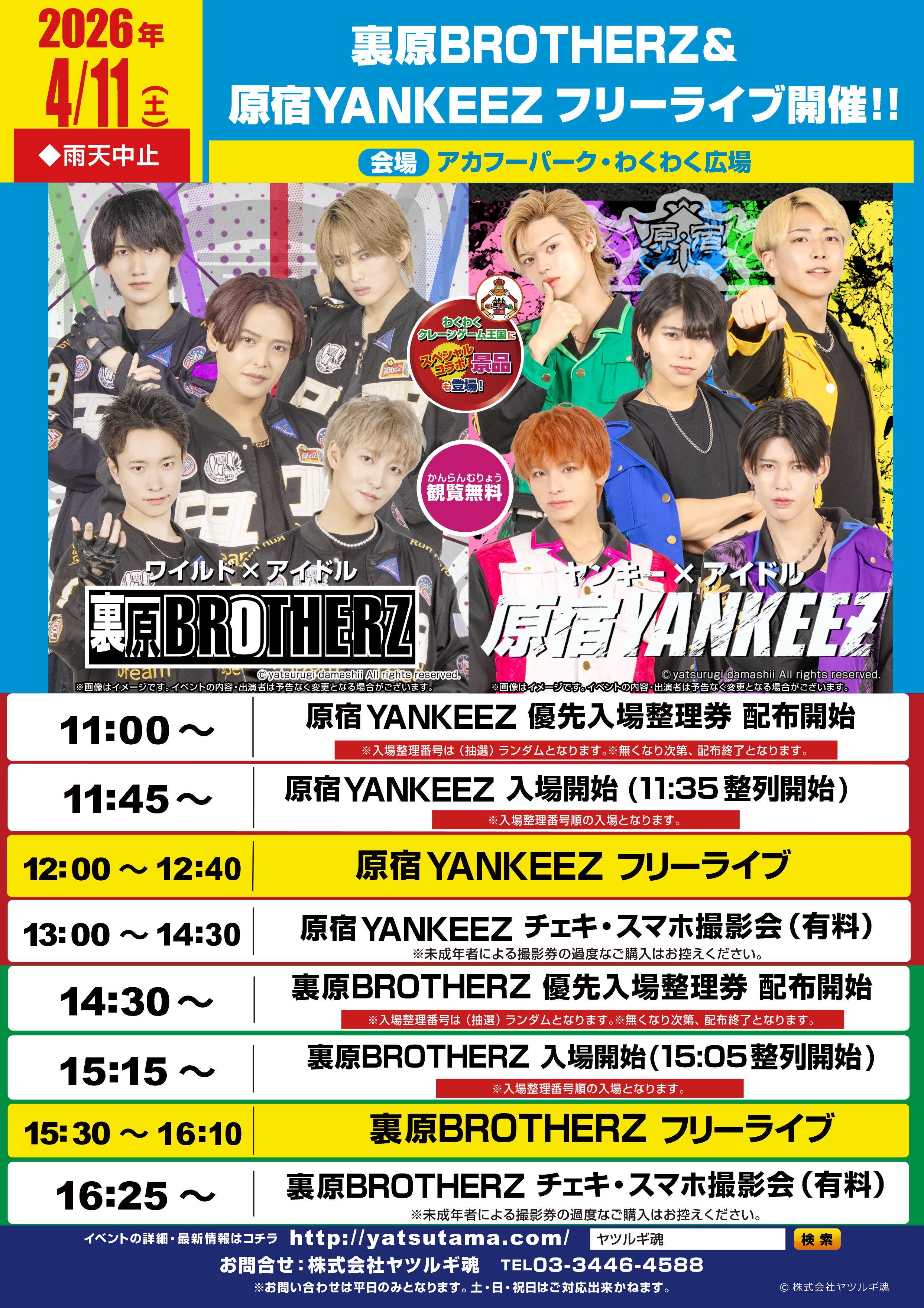 ※ 裏原BROTHERZ、原宿YANKEEZ、アカフーパークのSNSでご確認ください。