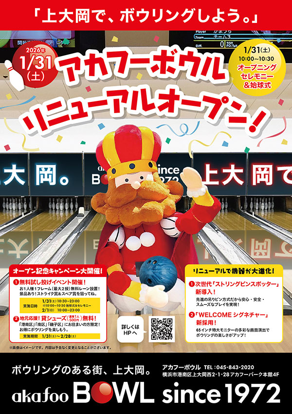 【プレスリリース】横浜・上大岡のボウリング場「アカフーボウル」最新機器を導入し、2026年1月31日(土)リニューアルオープン
