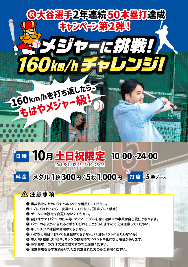 【土日祝限定イベント】メジャーに挑戦!160km/hチャレンジ開催!