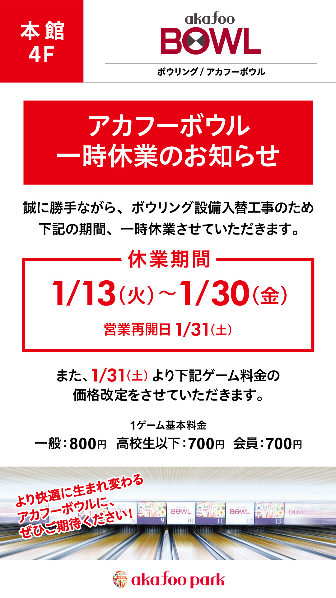 本館4F「アカフーボウル」最新機器を導入し、2026年1月31日(土)リニューアルオープンアカフーボウルのショップページはこちら