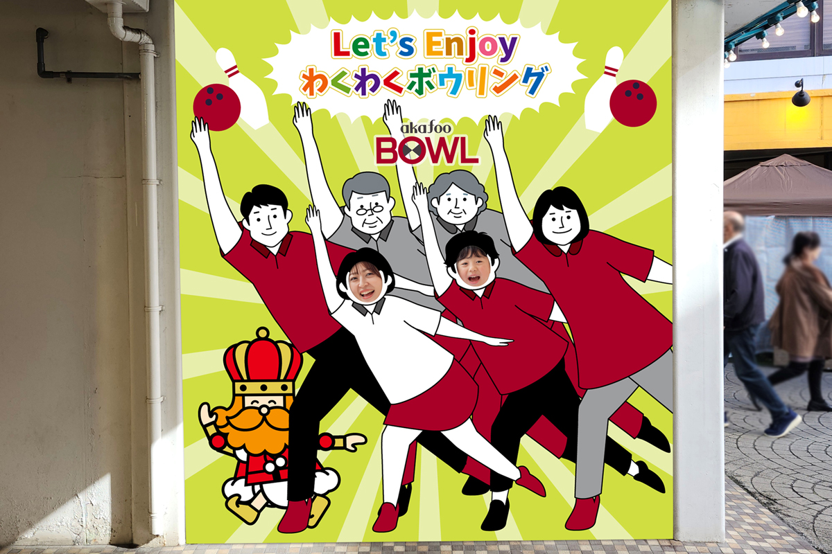 家族や、「わくわく王」と一緒にみんなで記念撮影!Let's Enjoy わくわくボウリング!