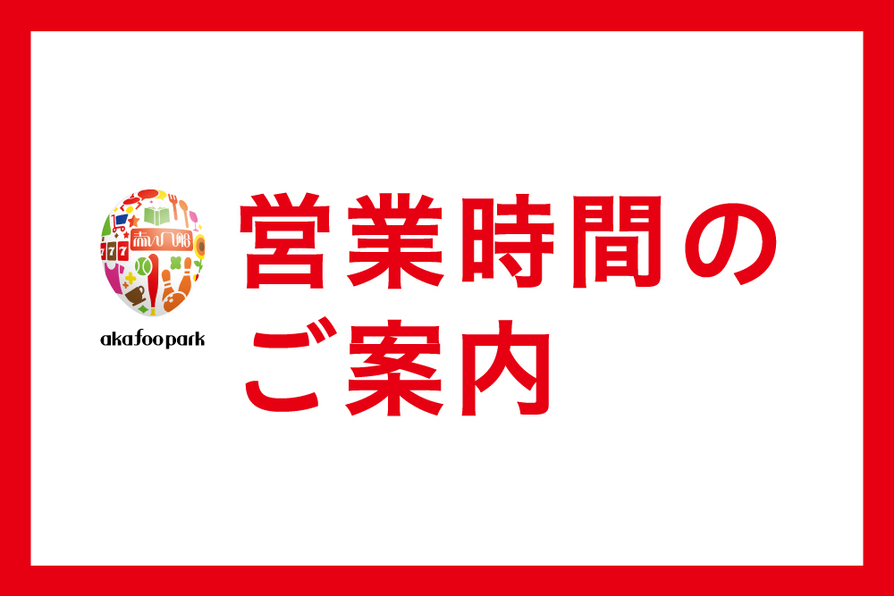 アカフーパーク通常営業時間のお知らせ