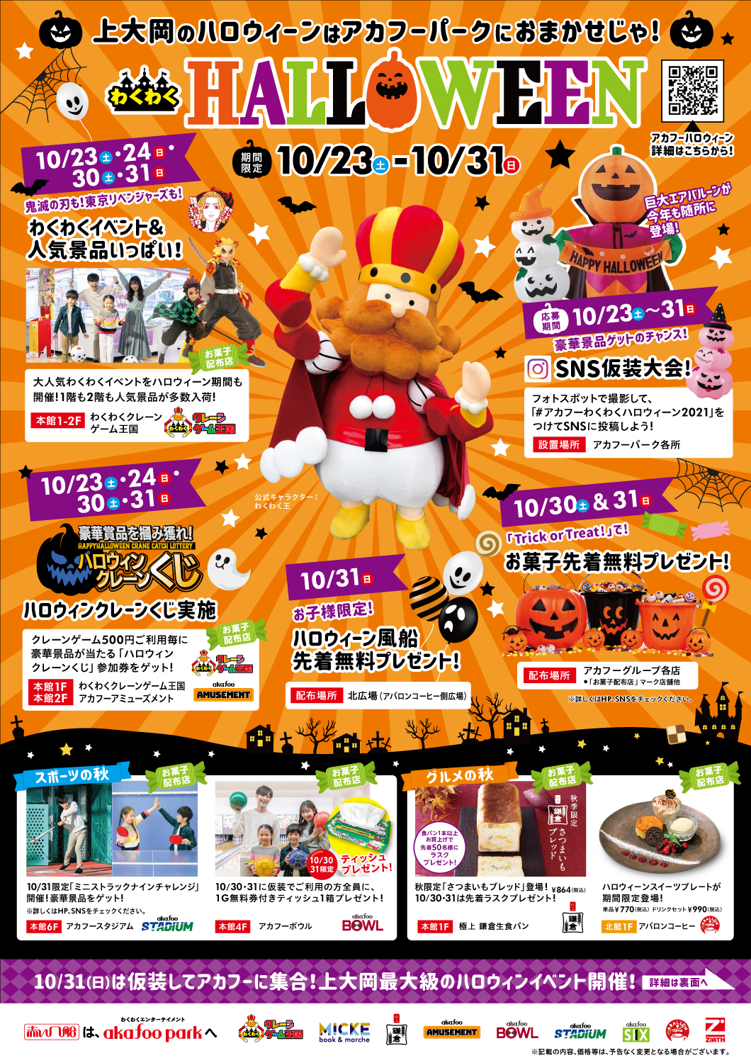 〜アカフーパーク各店もハロウィーン特典をご用意〜
