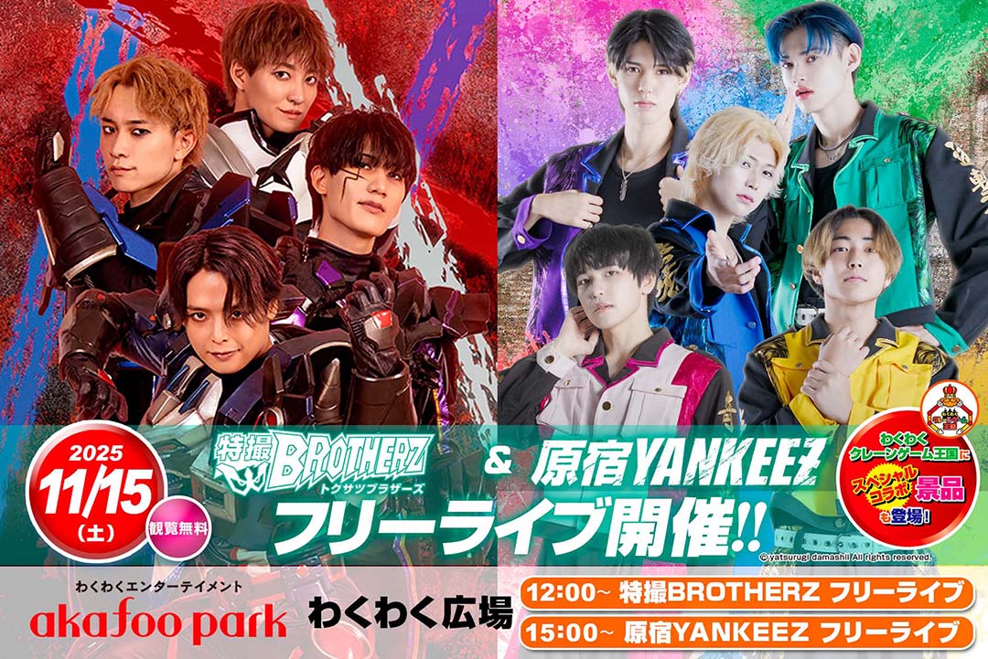 ※ 原宿YANKEEZ、特撮BROTHERZ、アカフーパークのSNSでご確認ください。