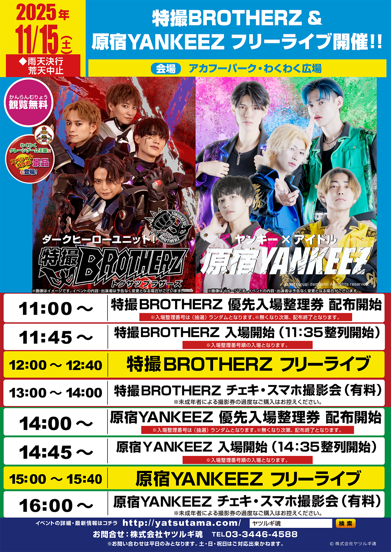 【イベント告知】11/15(土)特撮BROTHERZ・原宿YANKEEZ フリーライブ開催‼︎