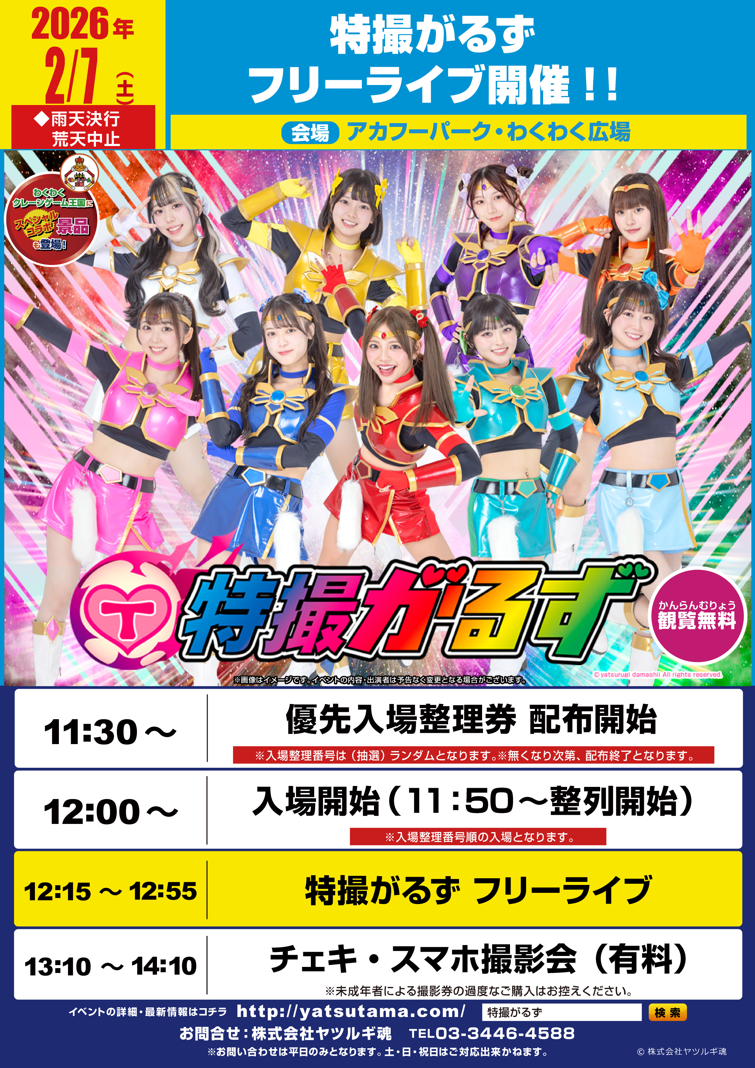 ※ 特撮がるず、裏原BROTHERZ、アカフーパークのSNSでご確認ください。