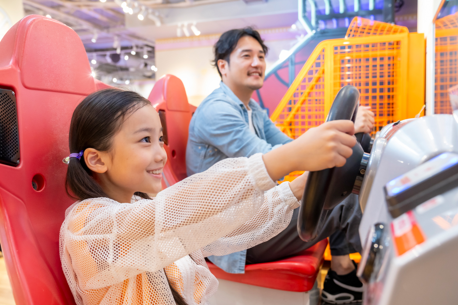 シートに乗り込み、3・2・1でスタート! 最大2名様で対戦可能!白熱バトルで盛り上がろう!
