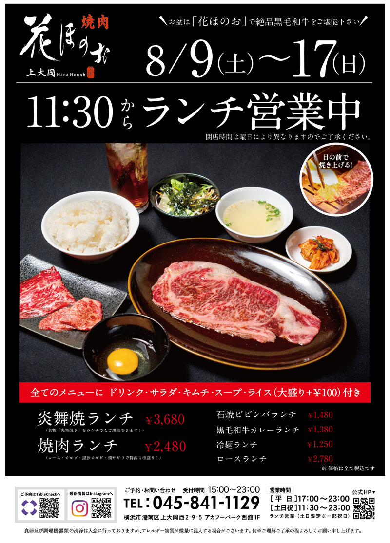 西館1F 焼肉 花ほのお上大岡からお知らせです。